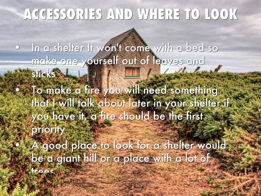 A good place to look for a shelter would be a giant hill or a place with a lot of trees