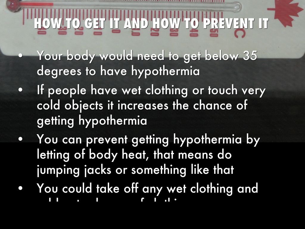 You can prevent getting hypothermia by letting of body heat, that means do jumping jacks or something like that