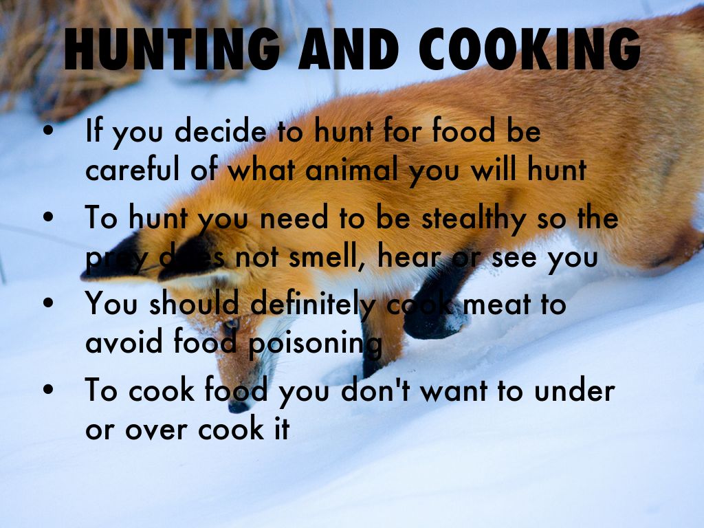 HUNTING,COOKING, FINDING FOOD, WHAT NOT TO EAT