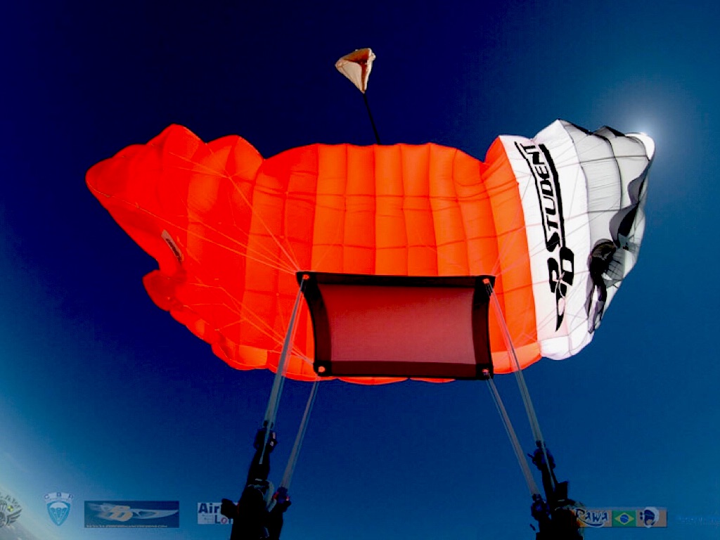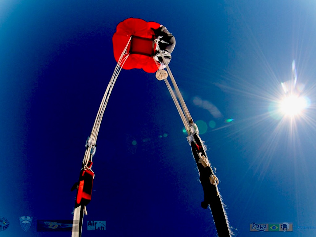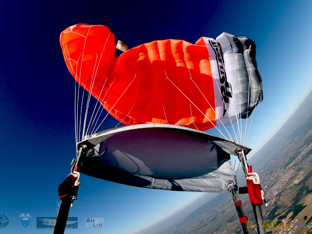 The main is a 420 sq ft 9 cell cross port vented canopy with a zero porosity double skin construction. With a reserve canopy made of the same construction, but can only be deployed a maximum of two times. We keep a streamlife in the 715.
