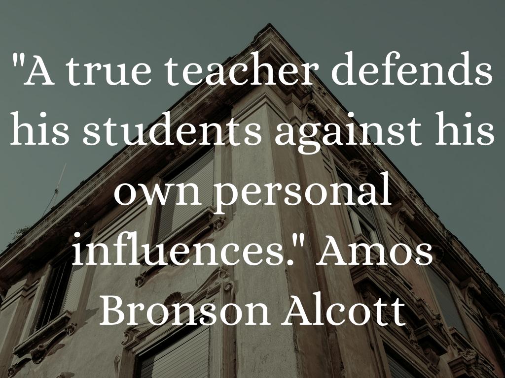 "A true teacher defends his students against his own personal influences." Amos Bronson Alcott