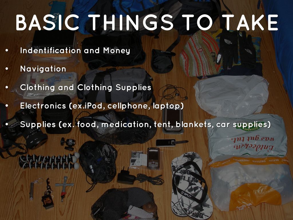 Supplies (ex. food, medication, tent, blankets, car supplies)