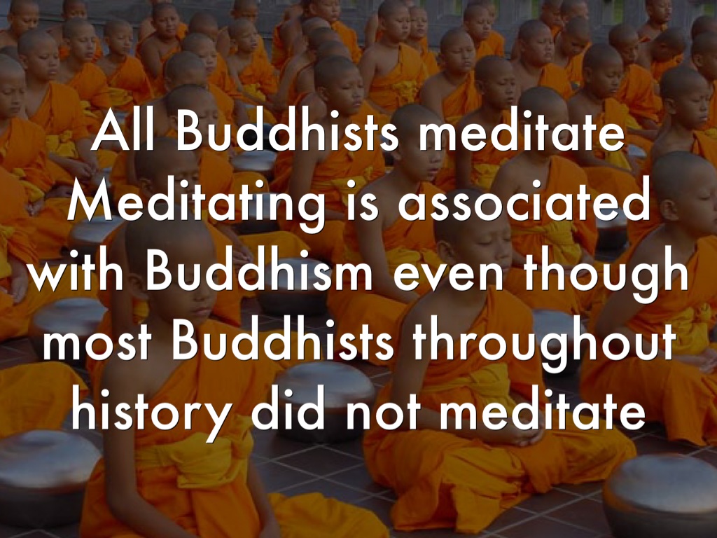 Meditating is associated with Buddhism even though most Buddhists throughout history did not meditate