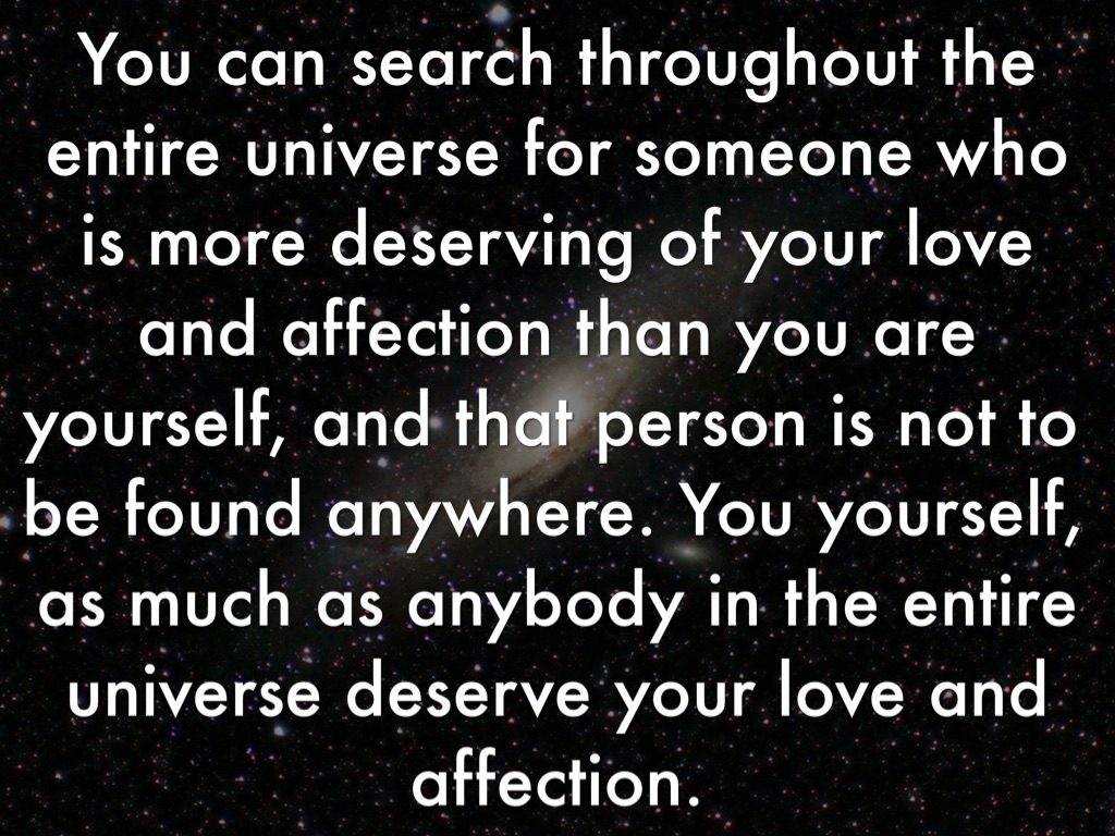 You can search throughout the entire universe for someone who is more deserving of your love and affection than you are yourself, and that person is not to be found anywhere. You yourself, as much as anybody in the entire universe deserve your love and affection.