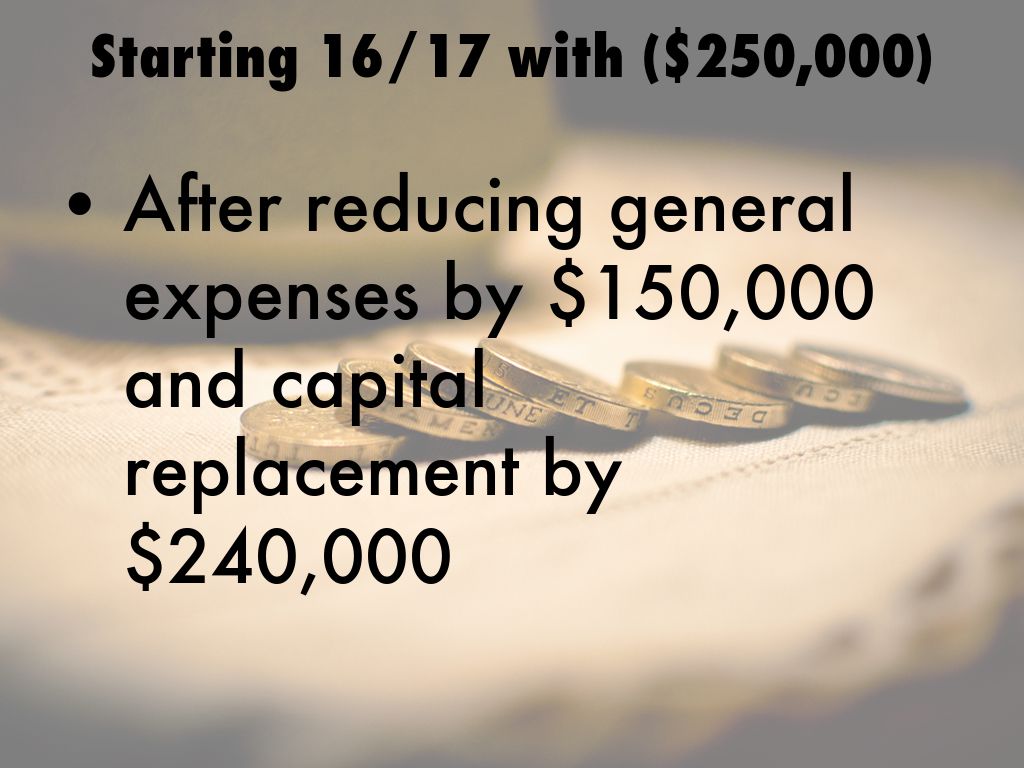 After reducing general expenses by $150,000 and capital replacement by $240,000
