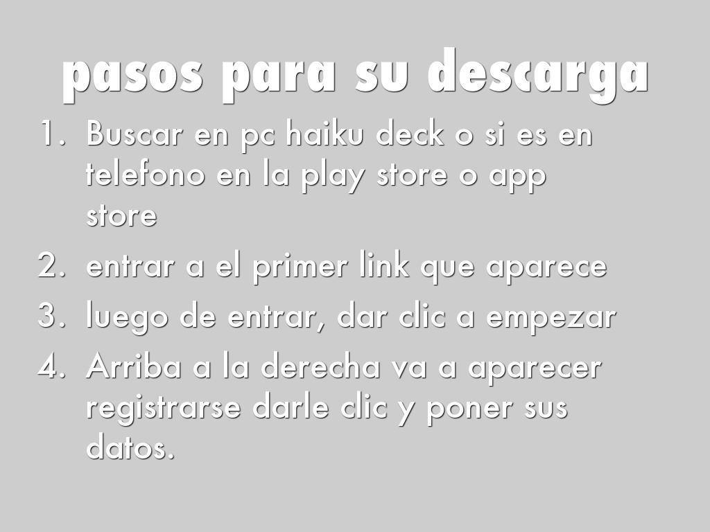 - Buscar en pc haiku deck o si es en telefono en la play store o app store