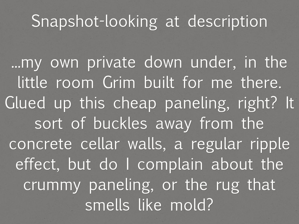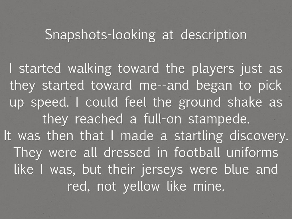 Snapshots descriptions of the characters and/or the setting