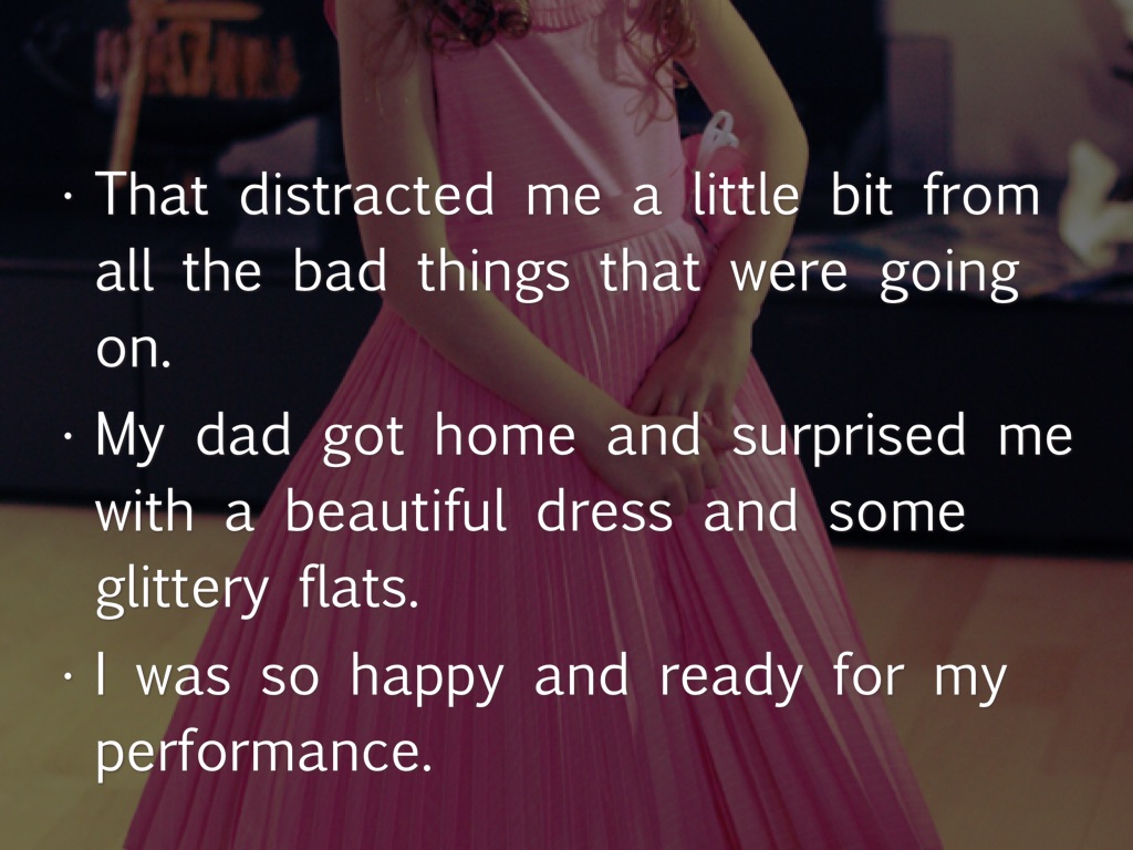 My dad got home and surprised me with a beautiful dress and some glittery flats.