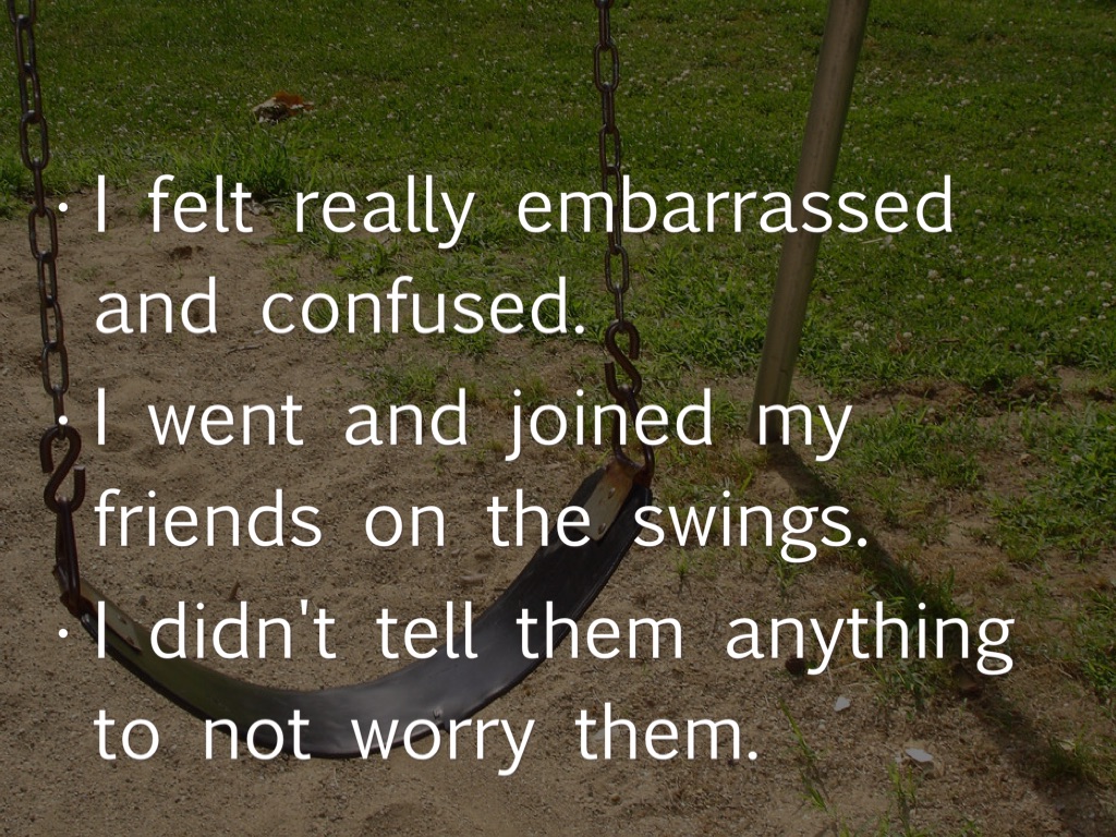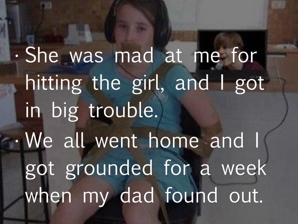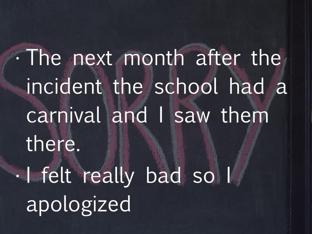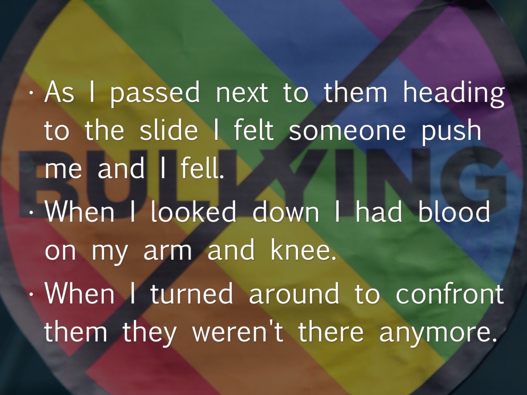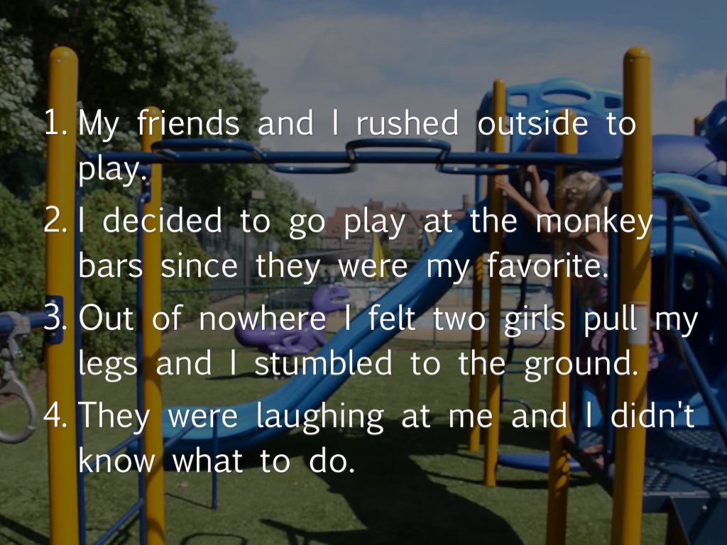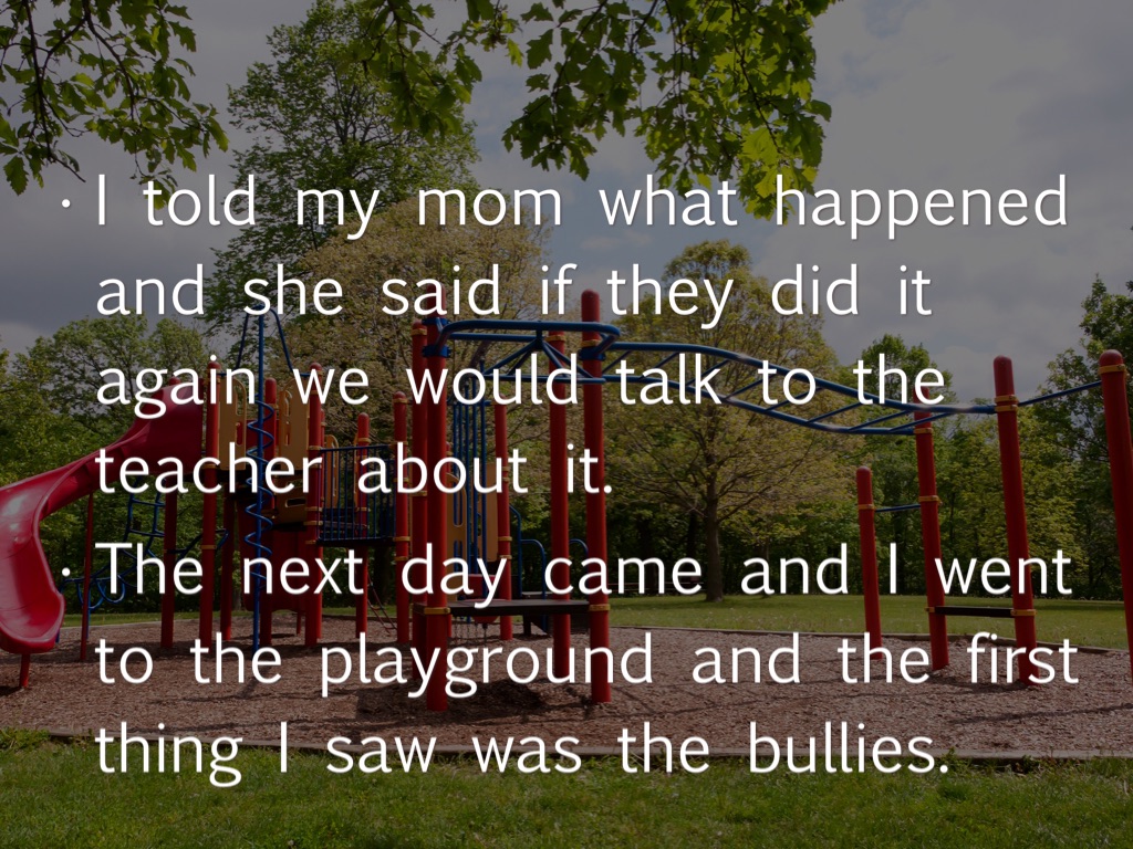 The next day came and I went to the playground and the first thing I saw was the bullies.