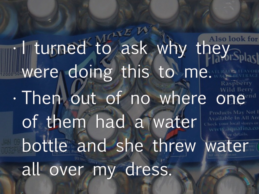 Then out of no where one of them had a water bottle and she threw water all over my dress.