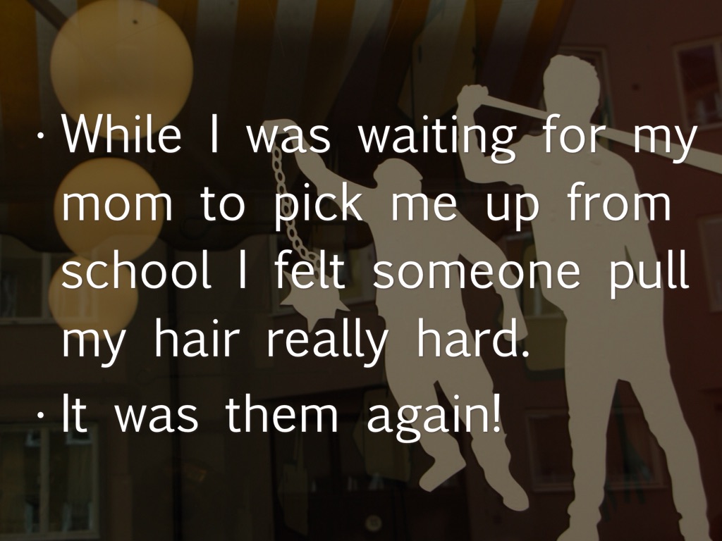 While I was waiting for my mom to pick me up from school I felt someone pull my hair really hard.