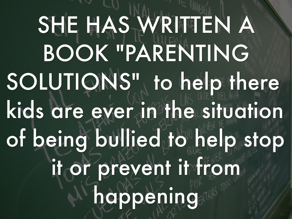 SHE HAS WRITTEN A BOOK "PARENTING SOLUTIONS" to help their kids from ever being bullied or prevent it from happening