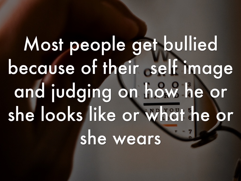Most people get bullied because of their self image and judging on how he or she looks like or what he or she wears