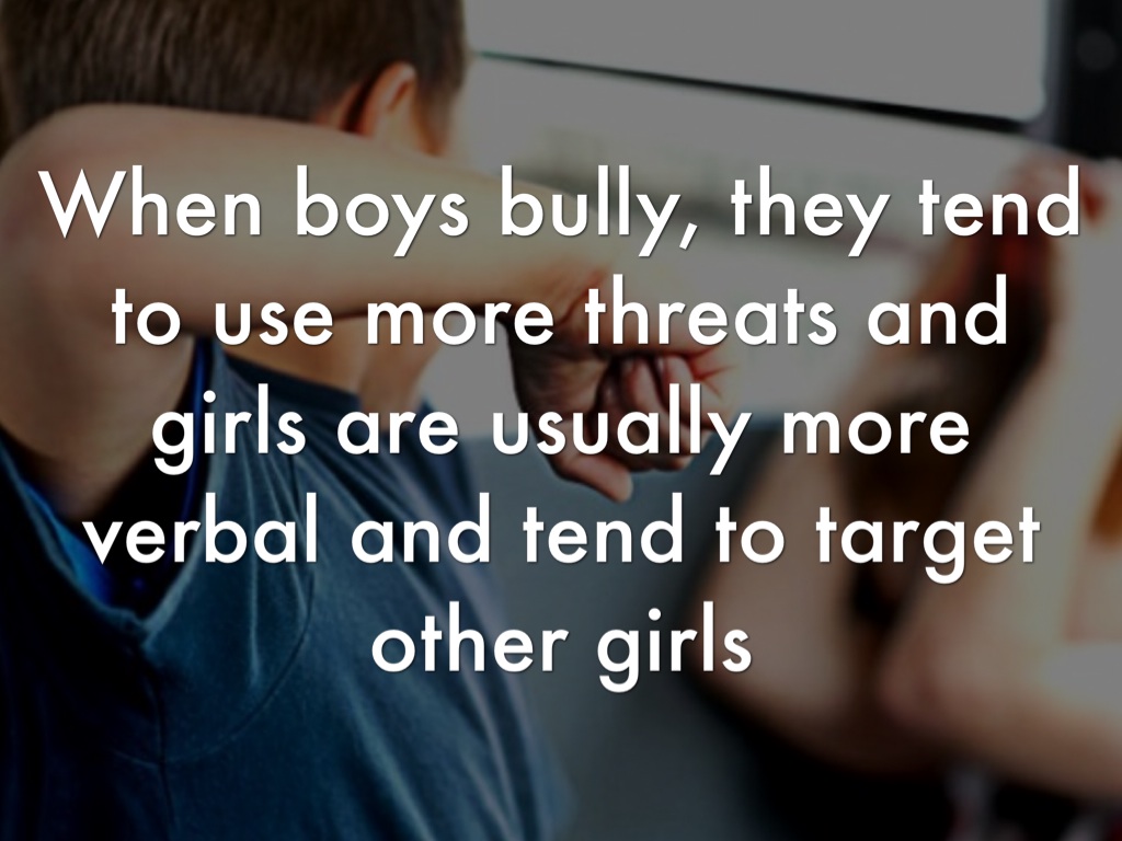 When boys bully, they tend to use more threats and girls are usually more verbal and tend to target other girls.