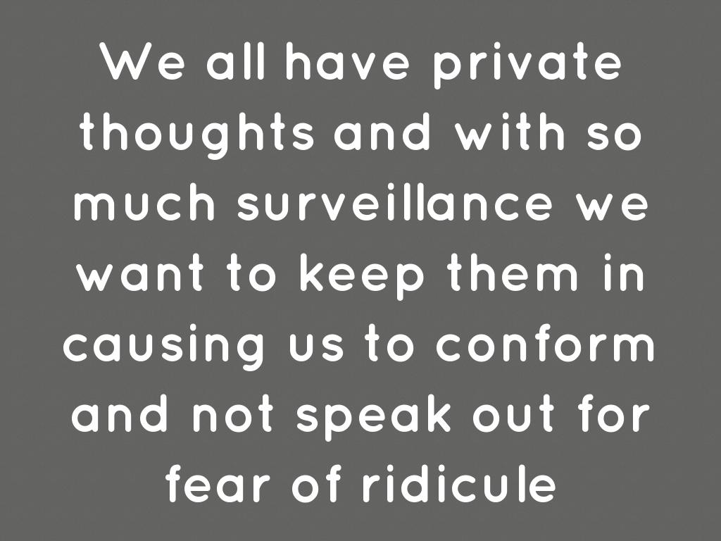 We all have private thoughts and with so much surveillance we want to keep them in causing us to conform and not speak out for fear of ridicule
