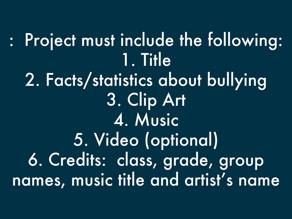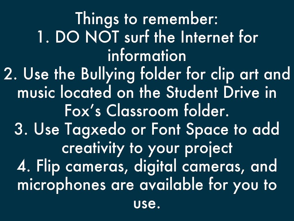 2. Use the Bullying folder for clip art and music located on the Student Drive in Fox’s Classroom folder.