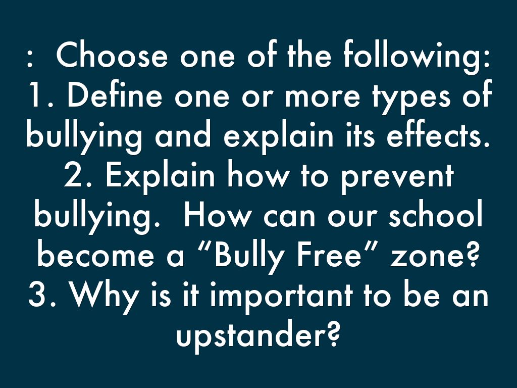 2. Explain how to prevent bullying. How can our school become a “Bully Free” zone?