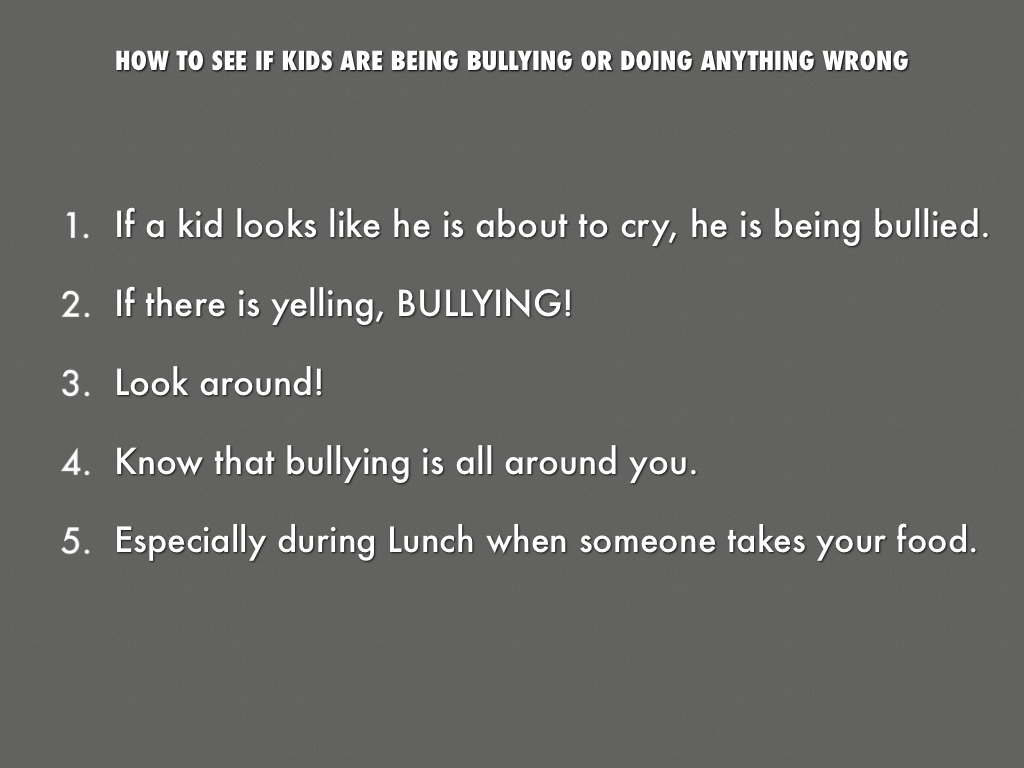 • If a kid looks like he is about to cry, he is being bullied.
