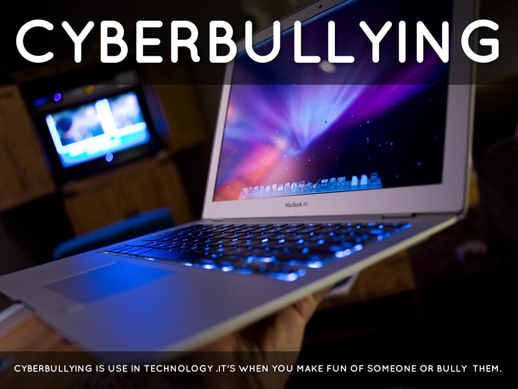 CYBERBULLYING IS USE IN TECHNOLOGY .IT'S WHEN YOU MAKE FUN OF SOMEONE OR BULLY THEM.