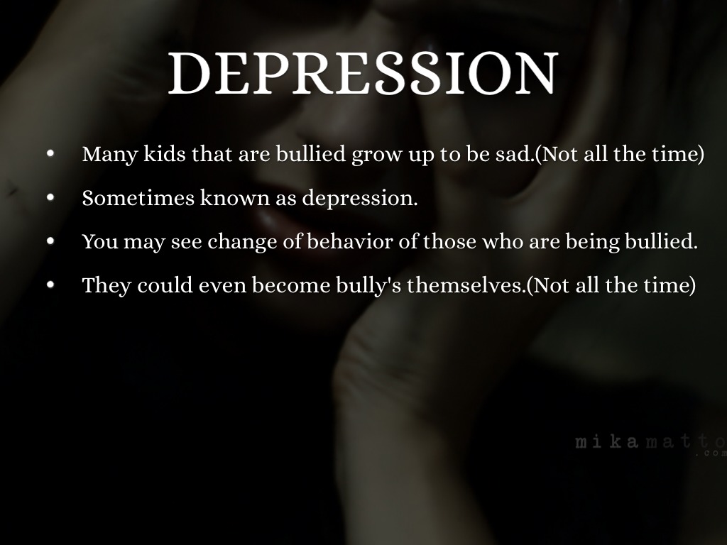 Many kids that are bullied grow up to be sad.(Not all the time)