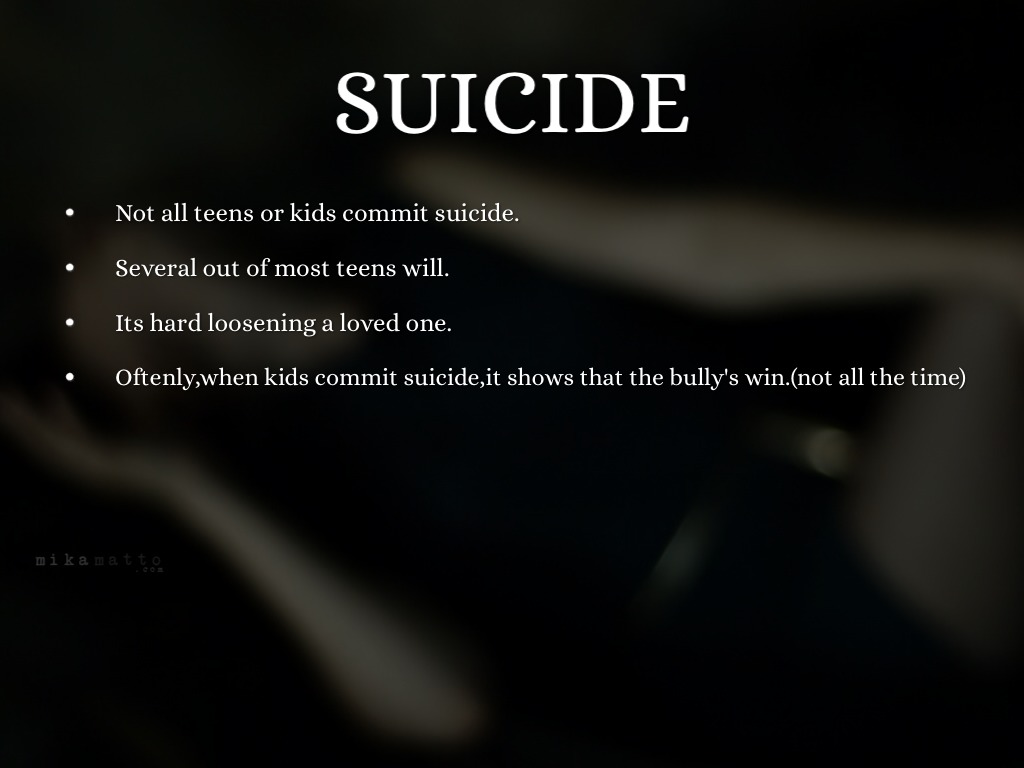 Oftenly,when kids commit suicide,it shows that the bully's win.(not all the time)