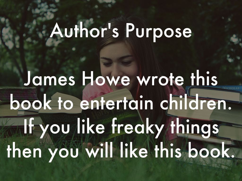 James Howe is a multi talented children's author. He was born August 2,1994 in Oneida, New York. His first book was written with his wife in 1979 and the book was Bunnicula : A rabbit tale of mystery.