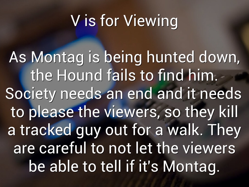 As Montag is being hunted down, the Hound fails to find him. Society needs an end and it needs to please the viewers, so they kill a tracked guy out for a walk. They are careful to not let the viewers be able to tell if it's Montag.