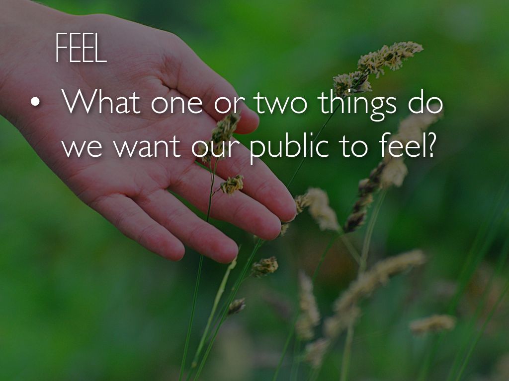 What one or two things do we want our public to feel?