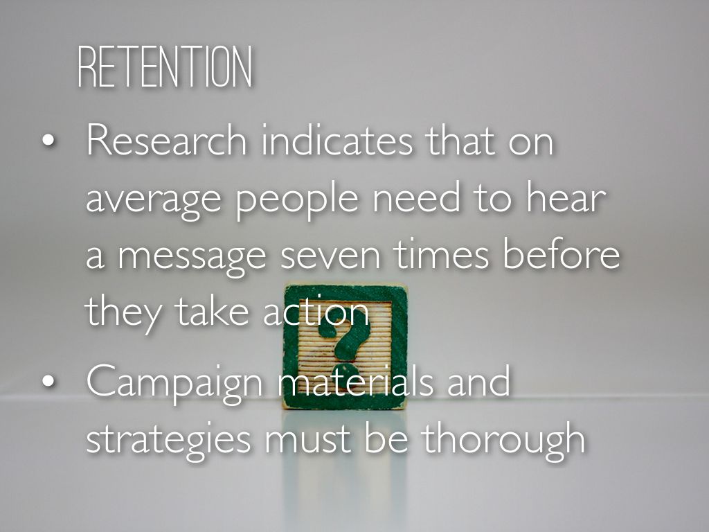 Research indicates that on average people need to hear a message seven times before they take action