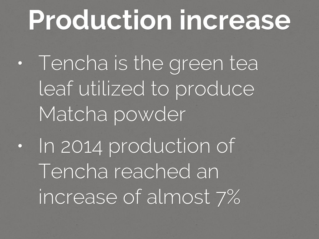 The breakout years for Matcha worldwide will be 2015 to 2018, with glowing media coverage, endless new Matcha products, Matcha-centric retail outlets, and a large spectrum of uses…