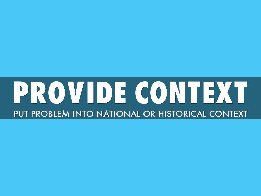 PUT PROBLEM INTO NATIONAL OR HISTORICAL CONTEXT