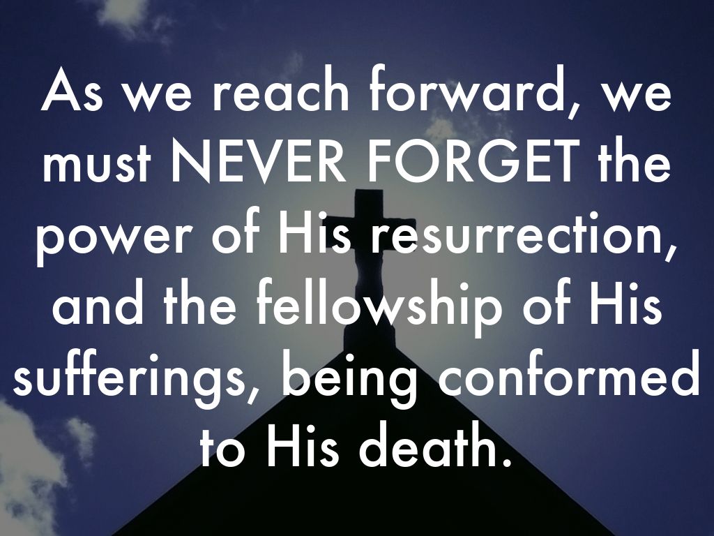 Php 3:12 Not that I have already attained, or am already perfected; but I press on, that I may lay hold of that for which Christ Jesus has also laid hold of me. 13 Brethren, I do not count myself to have apprehended; but one thing I do, forgetting those things which are behind and reaching forward to those things which are ahead, 14 I press toward the goal for the prize of the upward call of God in Christ Jesus.