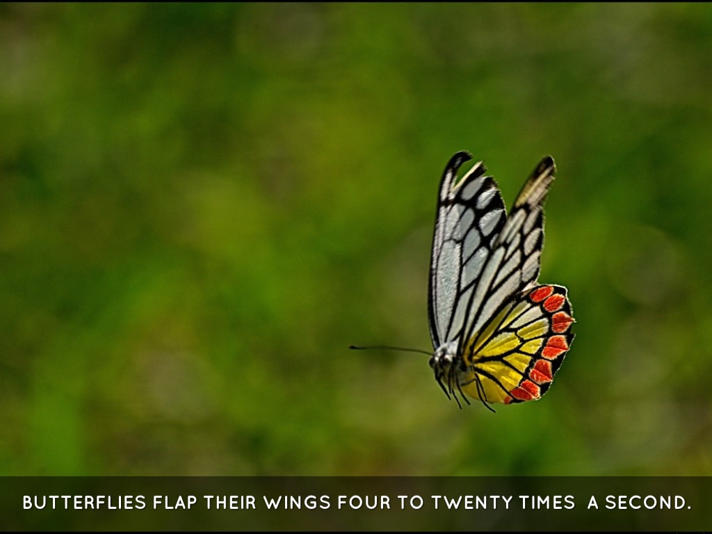BUTTERFLIES FLAP THEIR WINGS FOUR TO TWENTY TIMES A SECOND.
