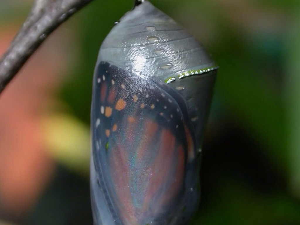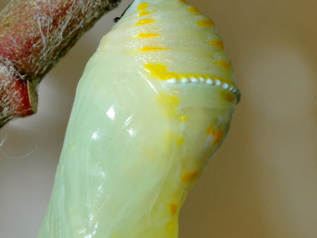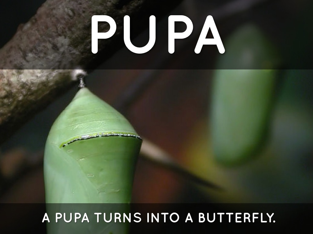 A PUPA TURNS INTO A BUTTERFLY.