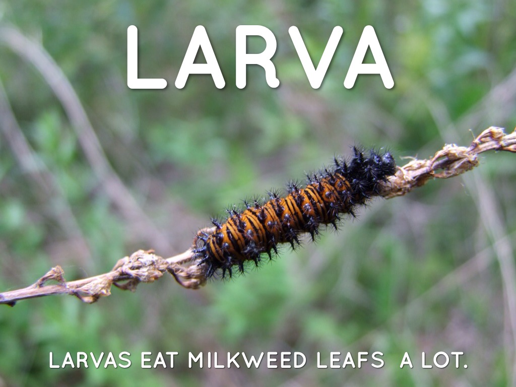 LARVAS EAT MILKWEED LEAFS A LOT.