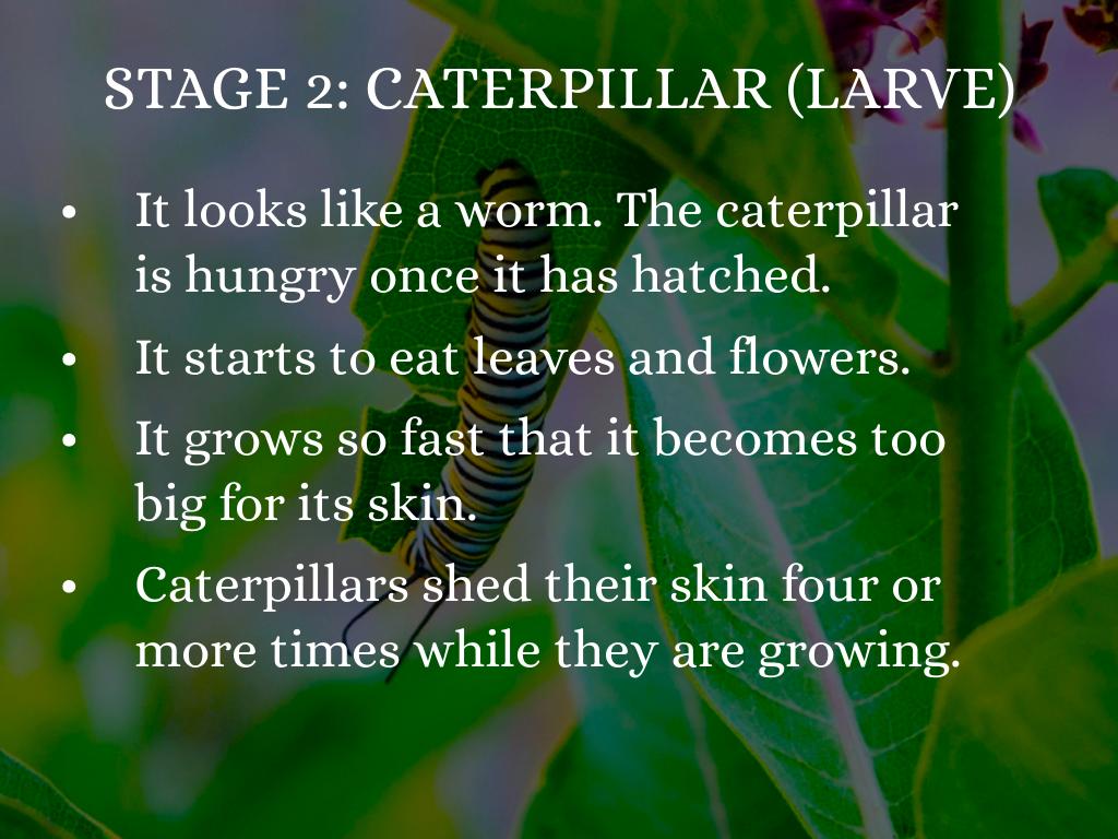 It looks like a worm. The caterpillar is hungry once it has hatched.