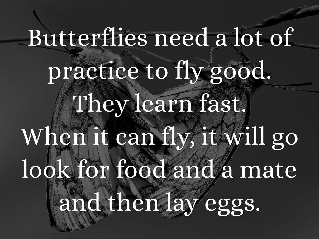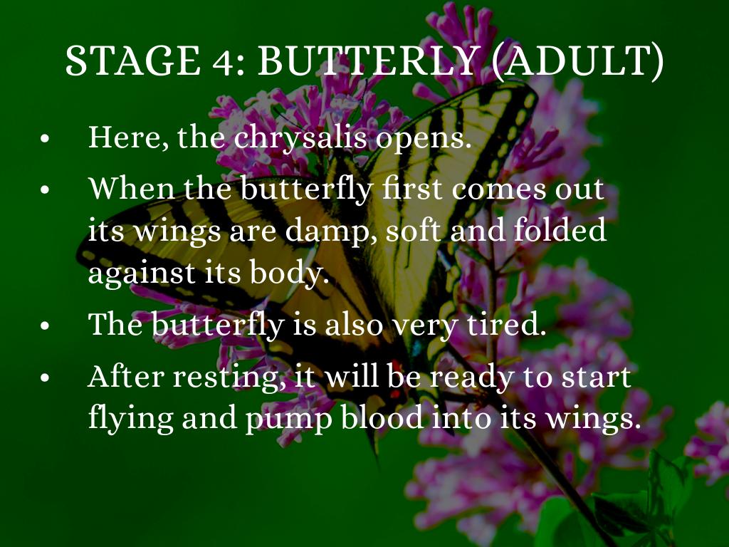 When the butterfly first comes out its wings are damp, soft and folded against its body.