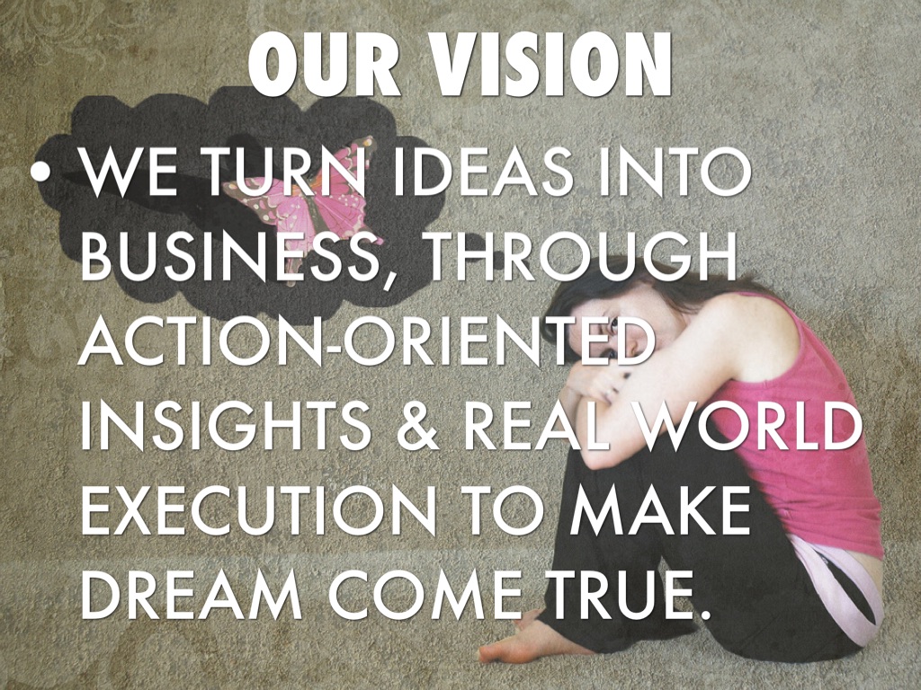 WE TURN IDEAS INTO BUSINESS, THROUGH ACTION-ORIENTED INSIGHTS & REAL WORLD EXECUTION TO MAKE DREAM COME TRUE.