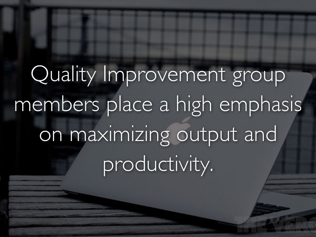 Quality Improvement group members place a high emphasis on maximizing output and productivity.