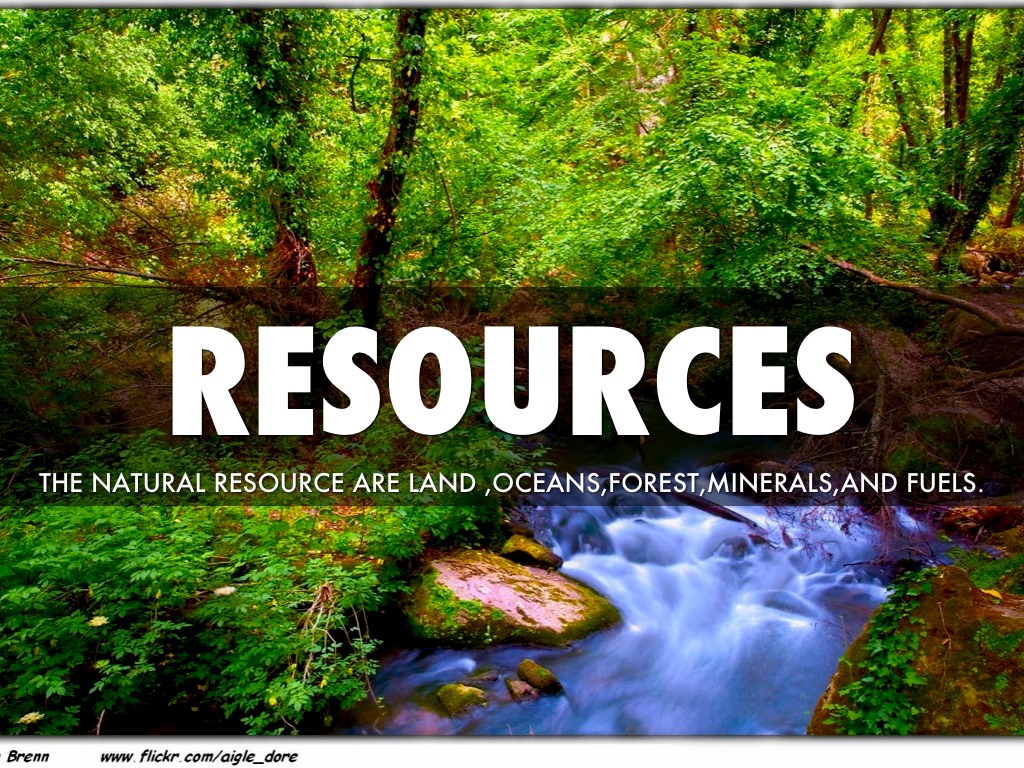 THE NATURAL RESOURCE ARE LAND ,OCEANS,FOREST,MINERALS,AND FUELS.