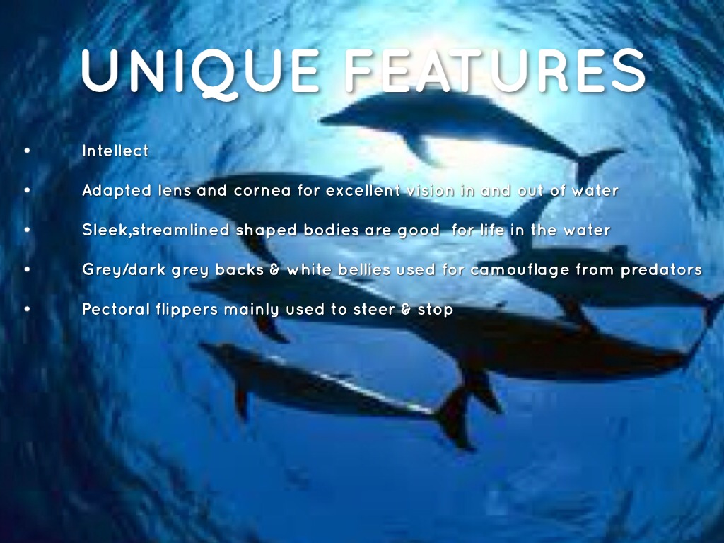 Grey/dark grey backs & white bellies used for camouflage from predators