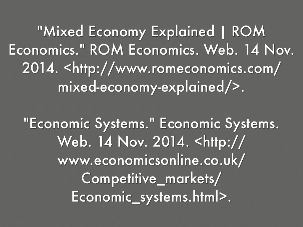 "Mixed Economy Explained | ROM Economics." ROM Economics. Web. 14 Nov. 2014. .