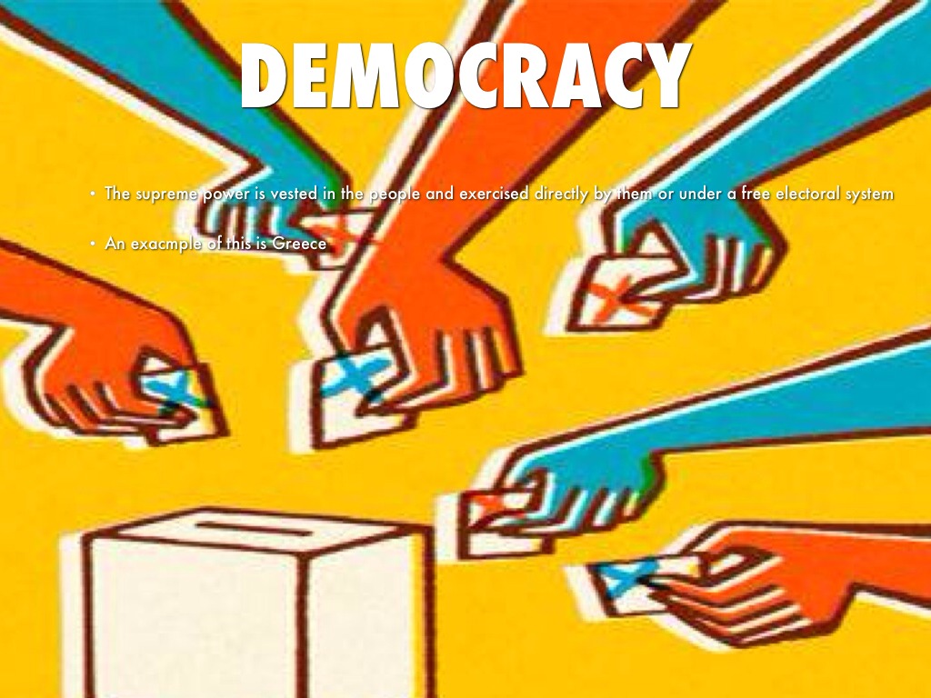 - The supreme power is vested in the people and exercised directly by them or under a free electoral system