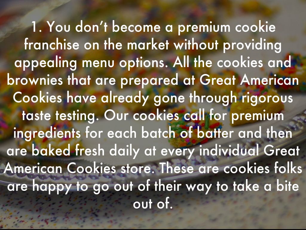 When you give a gift such as our cookies or cookie cakes, you will be wowed by our large selection which ensures that everyone will be able to enjoy their favorite. Here are several reasons why you might consider investing in your own Great American Cookies franchise in the New Year: