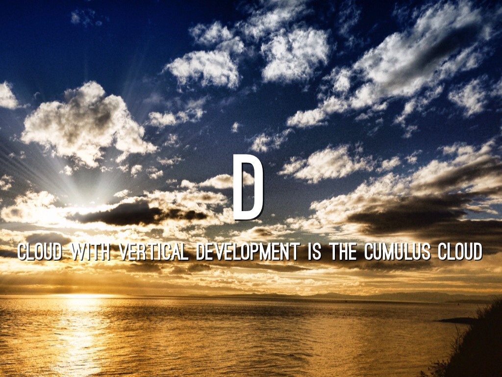 CLOUD WITH VERTICAL DEVELOPMENT IS THE CUMULUS CLOUD