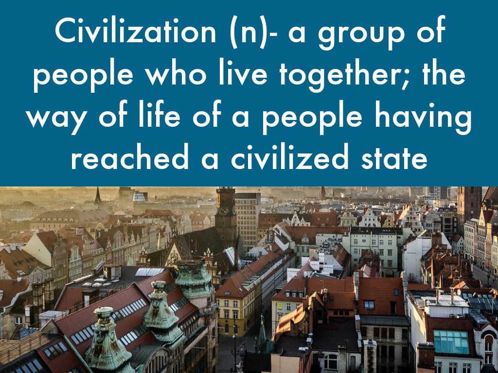 Civilization (n)- a group of people who live together; the way of life of a people having reached a civilized state