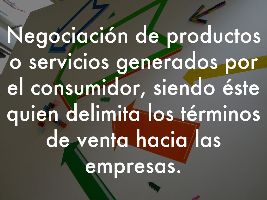 Negociación de productos o servicios generados por el consumidor, siendo éste quien delimita los términos de venta hacia las empresas.
