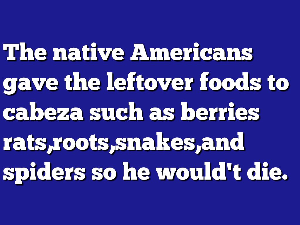 The native Americans gave the leftover foods to cabeza such as berries rats,roots,snakes,and spiders so he would't die.