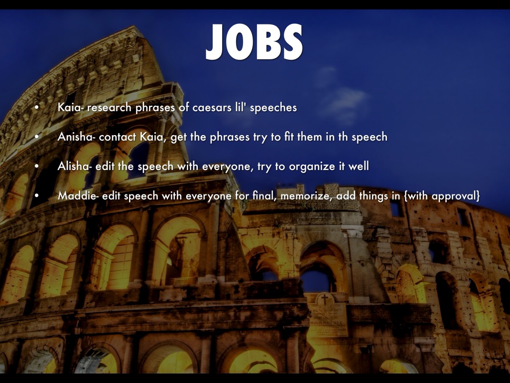 • Kaia- research phrases of caesars lil' speeches