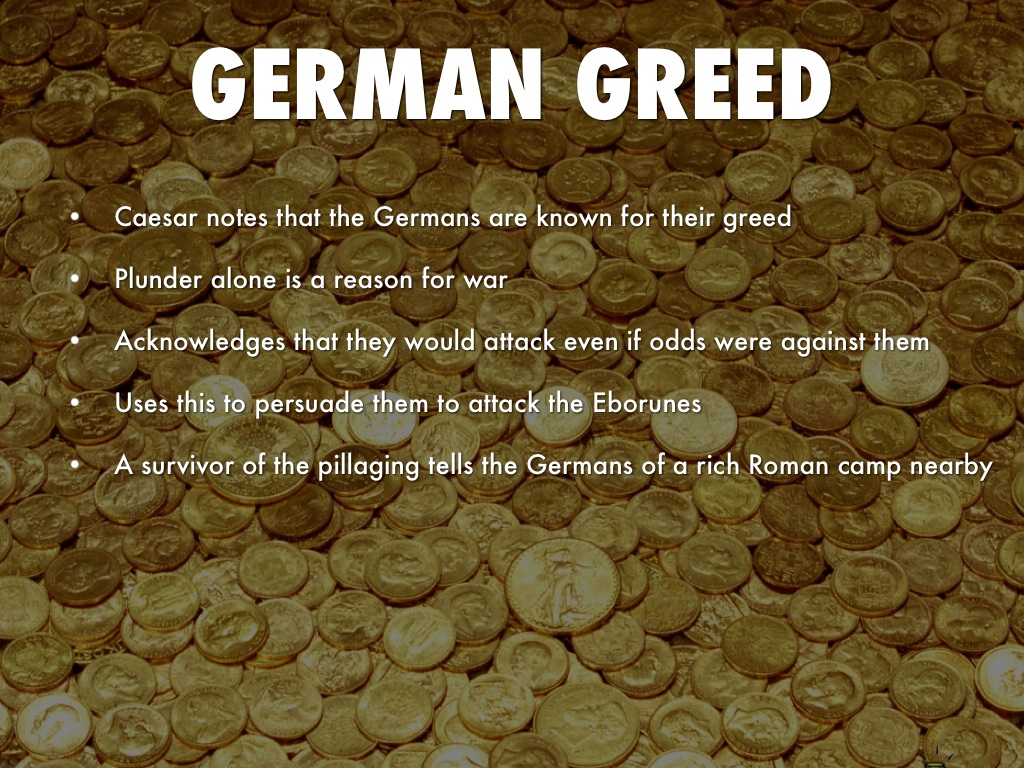 Caesar notes that the Germans are known for their greed
